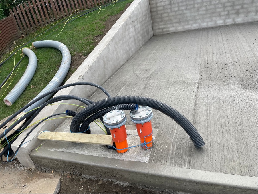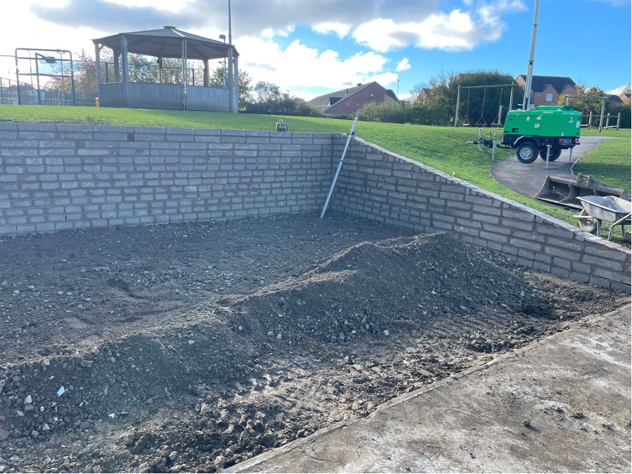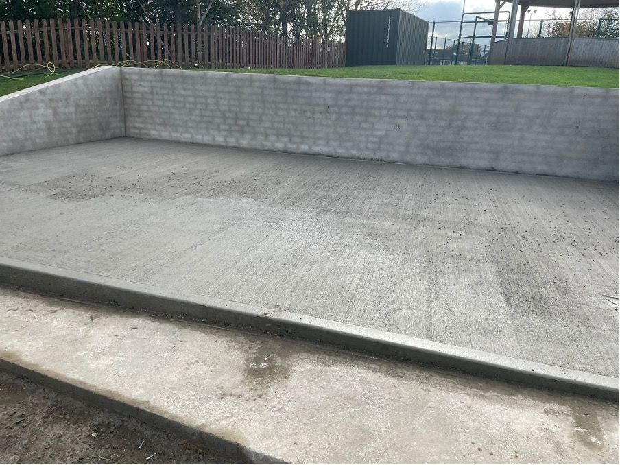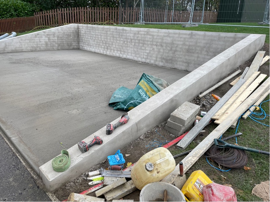 This included digging 35m3 for the new ASHP base, building a 1.4m high retaining wall and pouring an in-situ brushed finished reinforced concrete slab. CMD operatives also dug a 90m trench across the playground for the electric services to the mainframe, and a 30m trench for the mechanical pipework to the school building.