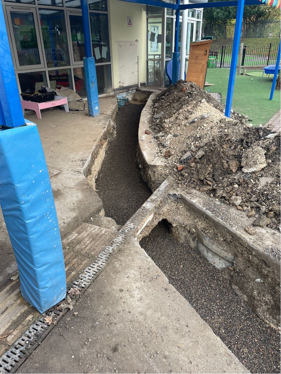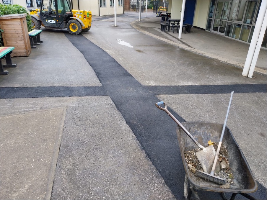 From the end of the school day on a Friday for 10 straight days, CMD operatives worked later shifts to ensure all work in the playground was completed for the children’s return after the half term holiday.